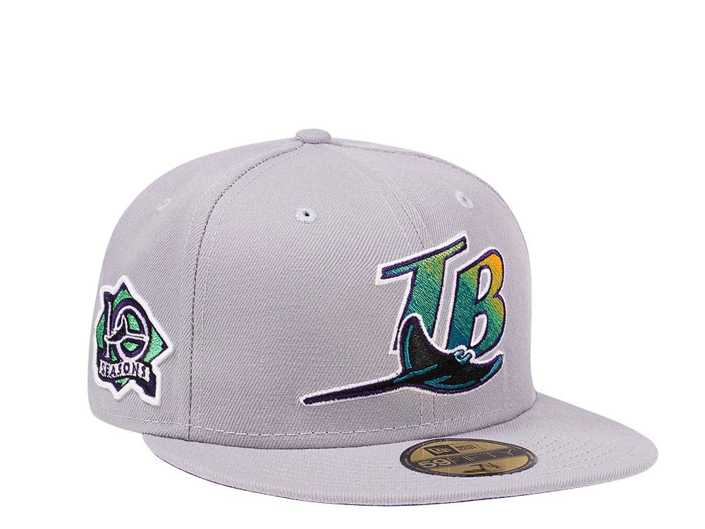 New Era Tampa Bay Rays 10 Seasons Gray and Purple Edition 59Fifty Fitted Cap